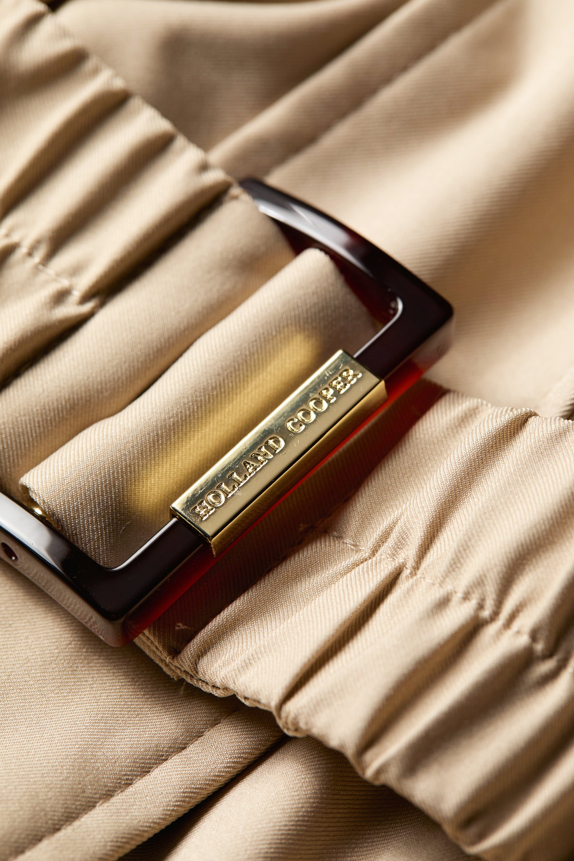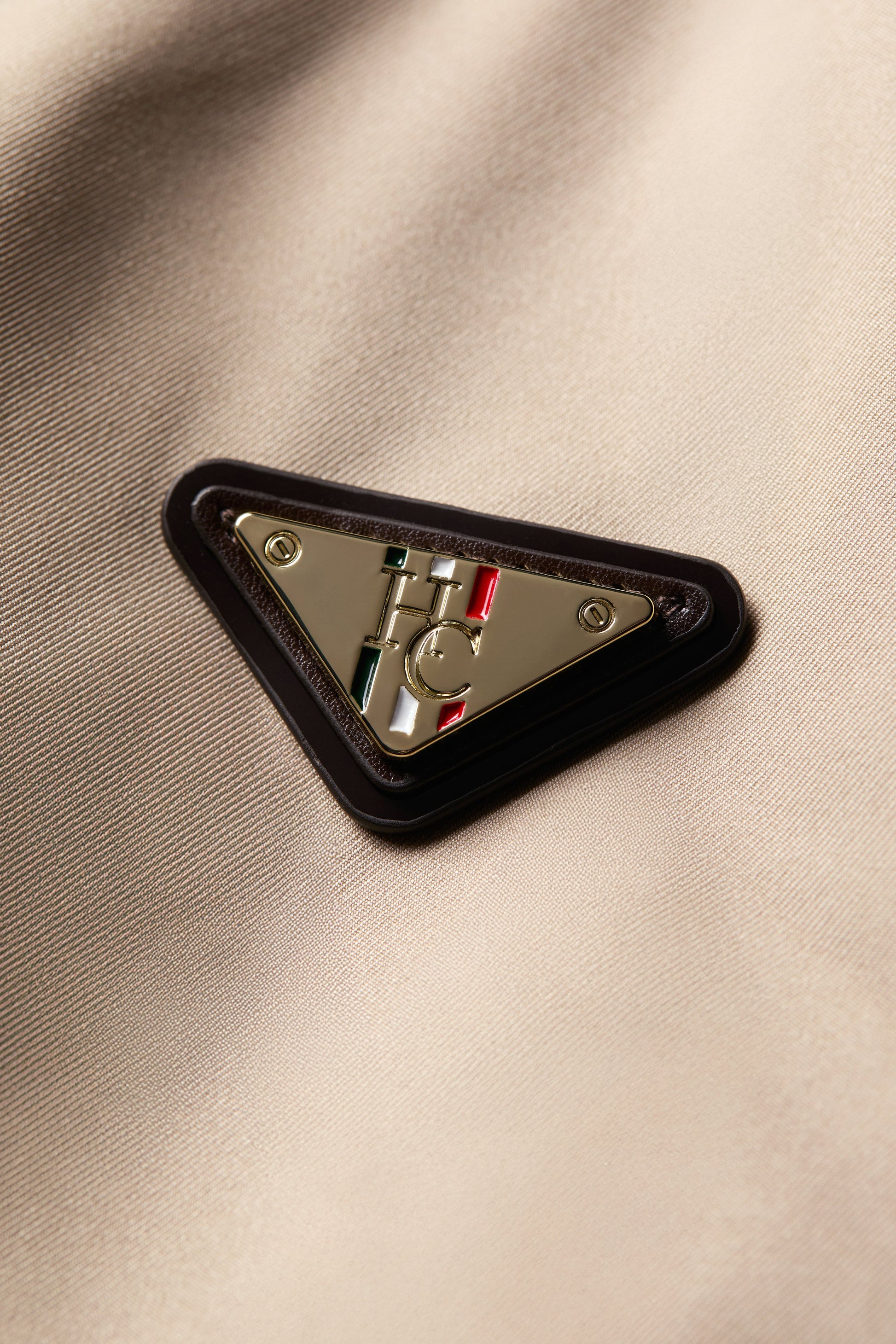 A mid-length technical parka designed for both style and functionality. Crafted from high-density waterproof shell fabric. this coat ensures you stay dry and comfortable in any weather. Featuring a fabric covered elastic belt with a sophisticated tortoiseshell buckle closure. The storm plackets with signature gold snap fastenings and front yoke details add a touch of refinement. The double strap fastening on the cuffs provides a secure fit. and the HC monogram on the back belt loop adds a signature finish.