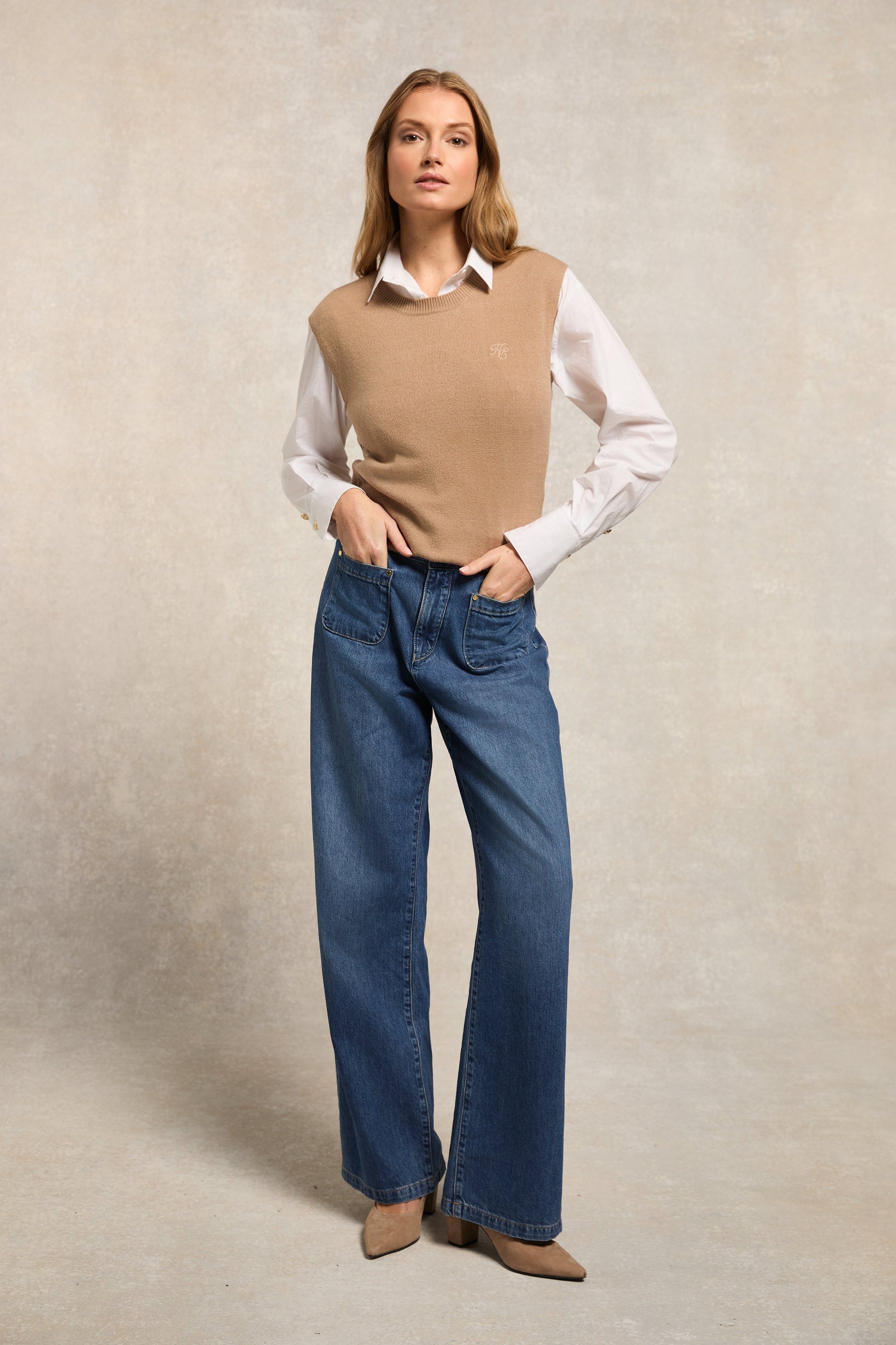 Elevate your wardrobe essentials with the Sarah Knitted Tank. Crafted from a sumptuous blend. this tank top offers a luxurious yet lightweight feel. perfect for layering or wearing solo. Designed with a loose fit and a classic crew neck. it ensures comfort without compromising on style. The tonal script HC embroidery subtly adorns the chest. adding a touch of understated elegance. Ideal for both casual and sophisticated looks. the Sarah Knitted Tank is a versatile addition to any wardrobe.
