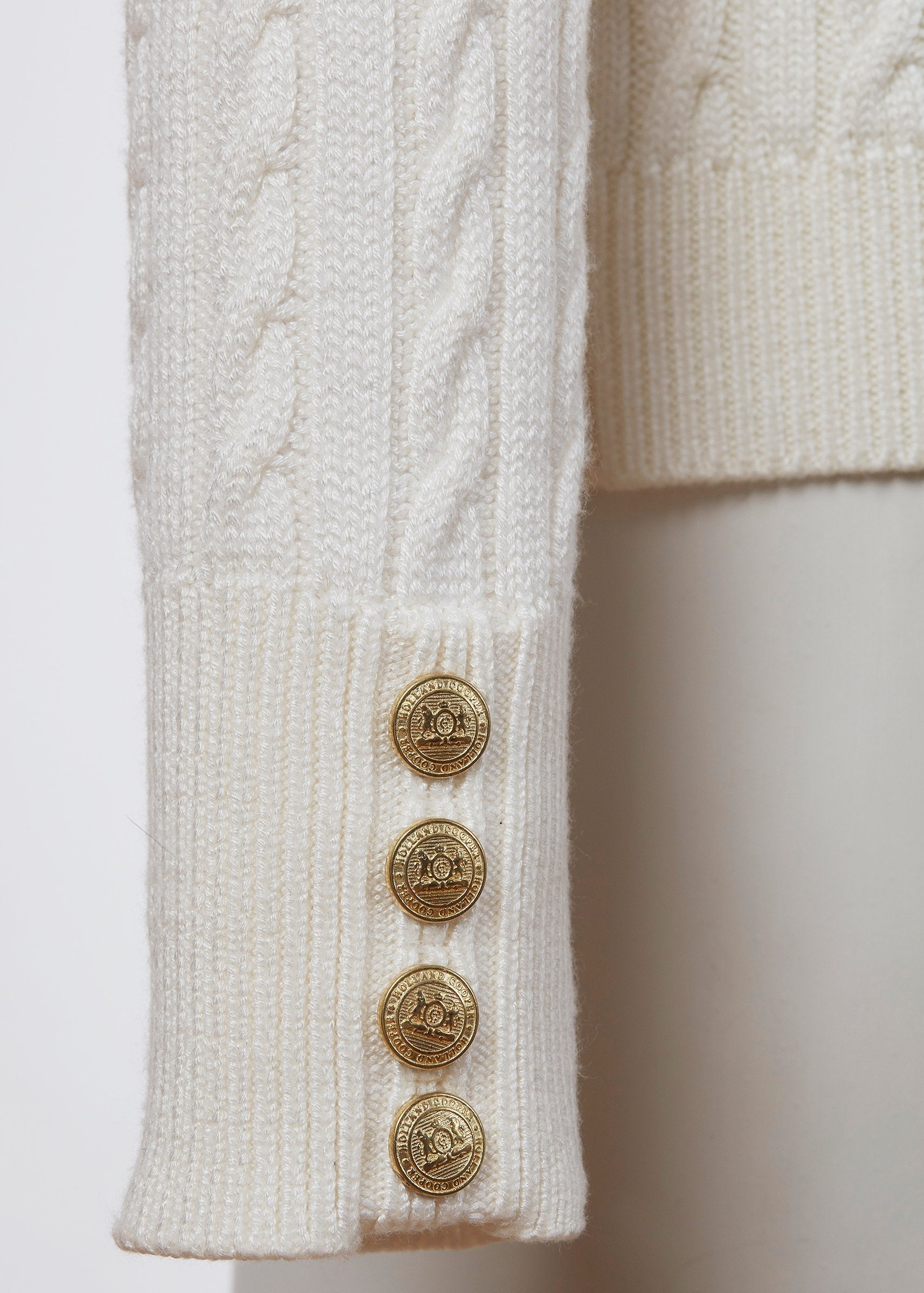 Our much-loved Portland knit has been updated to a slimmer and lighter-weight version. Designed with a slim silhouette and relaxed roll neck. this lightweight cable knit jumper has been curated from a super-soft yarn. With iconic HC hardware on both the cuff and shoulders. this knit wears perfectly tucked into our jodhpur jeans.