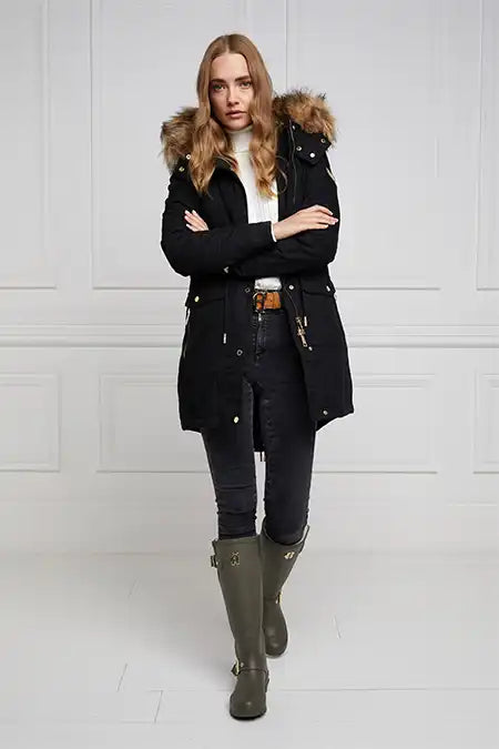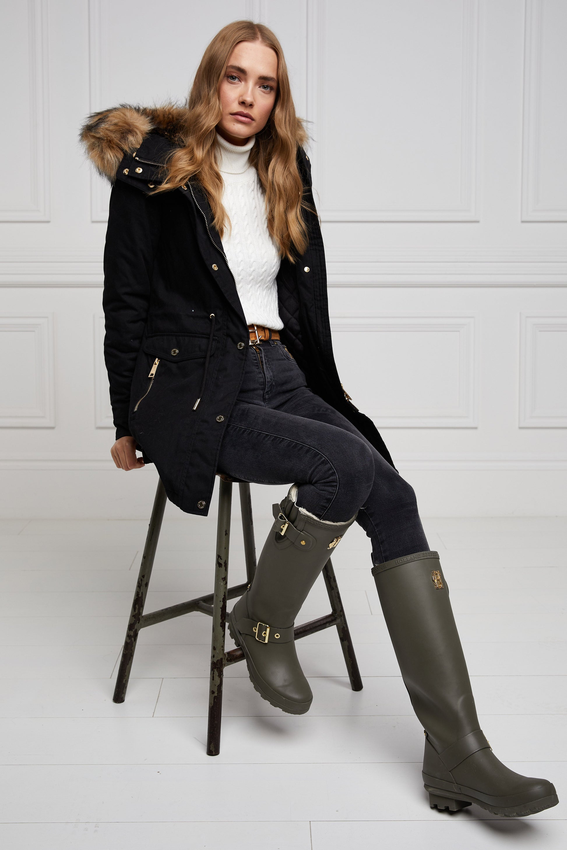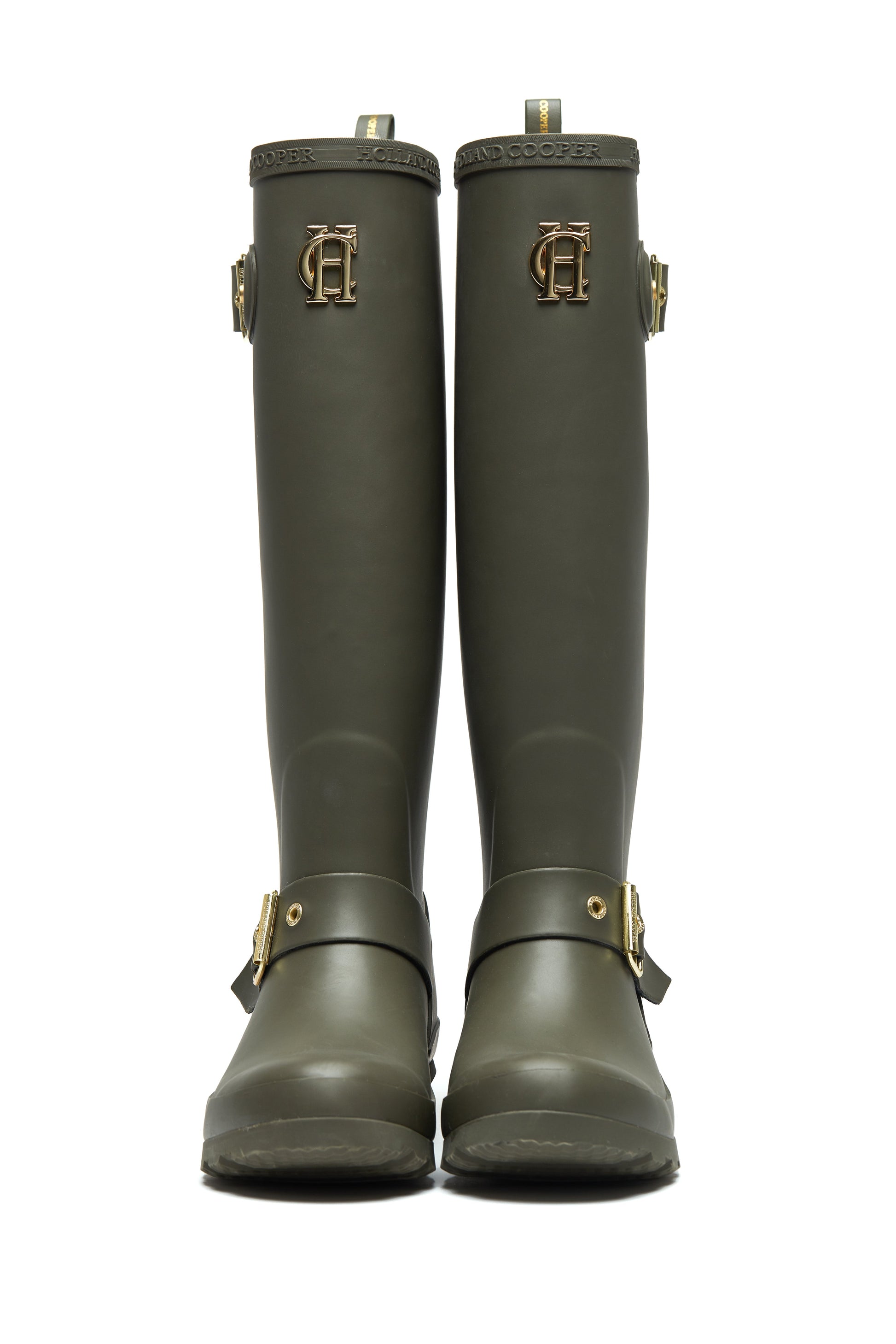 The superior full thermal sherpa lining is engineered to keep your feet and lower legs insulated. cosy and warm at all times. This eye-catching boot is adorned with iconic HC hardware and strapping details. Complete with side gusset allowing for an adjustable leg width ensuring our wellington boot fits across a range of calf sizes comfortably. Packed and travelled within a large HC signature green and gold boot box.