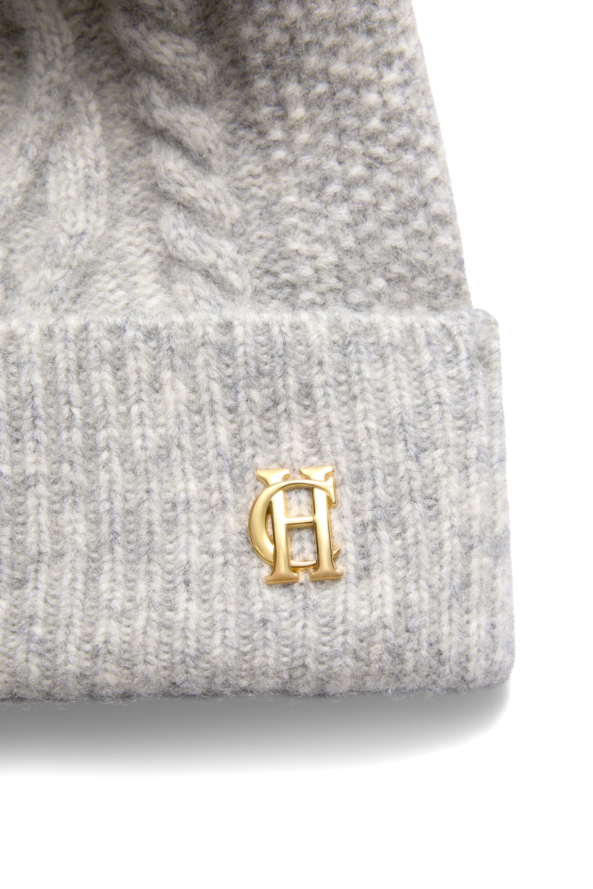 Introducing the Sloane Cable Bobble Hat. crafted in a thick. chunky wool-blend yarn for ultimate warmth and texture. Designed in a larger. oversized fit. it features a turn-back cuff and a playful. large pom-pom for a cosy yet stylish winter accessory. Perfect for layering over your cold-weather essentials. this hat combines comfort with signature HC charm.