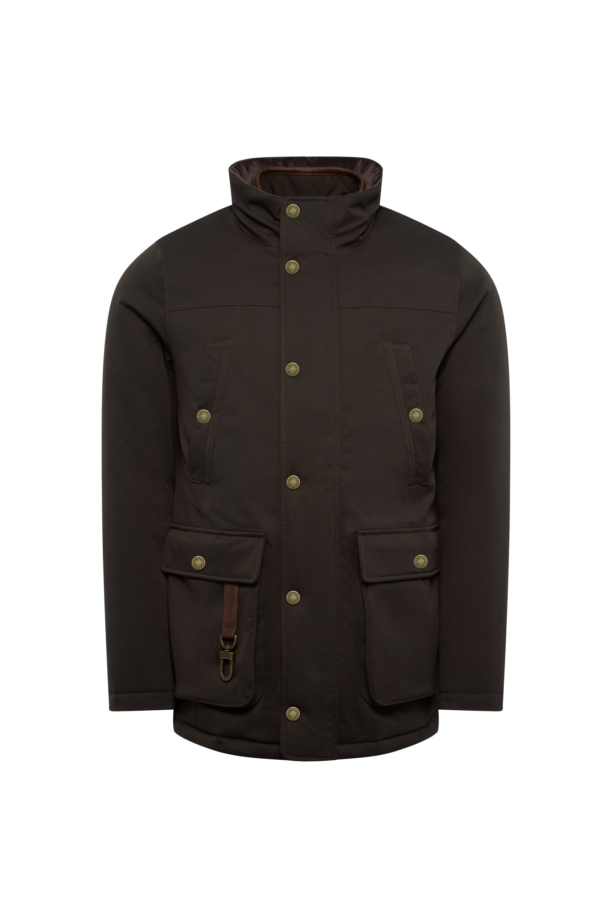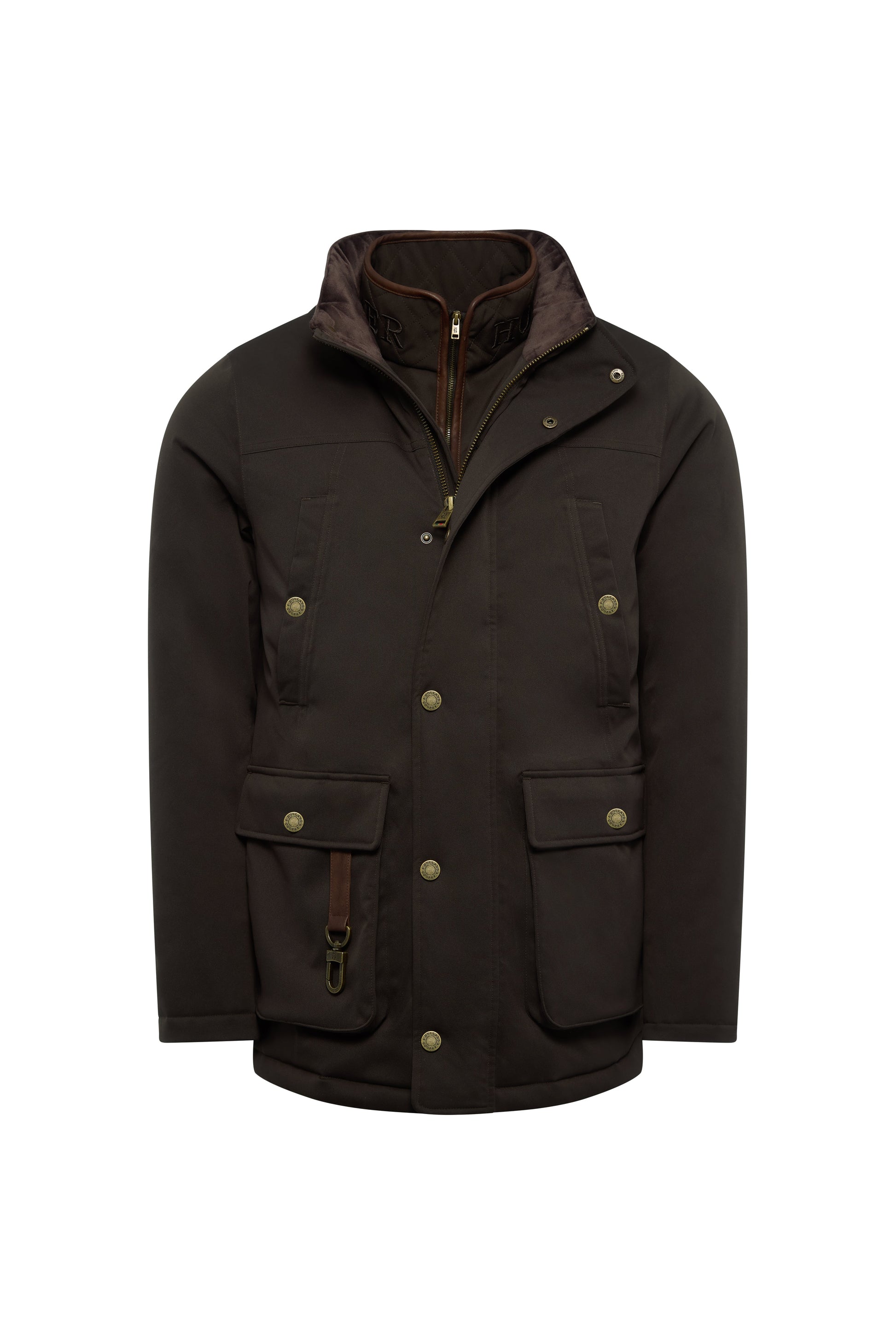 Introducing the Holland Cooper Men's Stamford Coat. a perfect blend of practicality and timeless elegance. This classic four-pocket field coat in matte khaki features a waterproof shell with fully taped seams. ensuring protection in any weather.