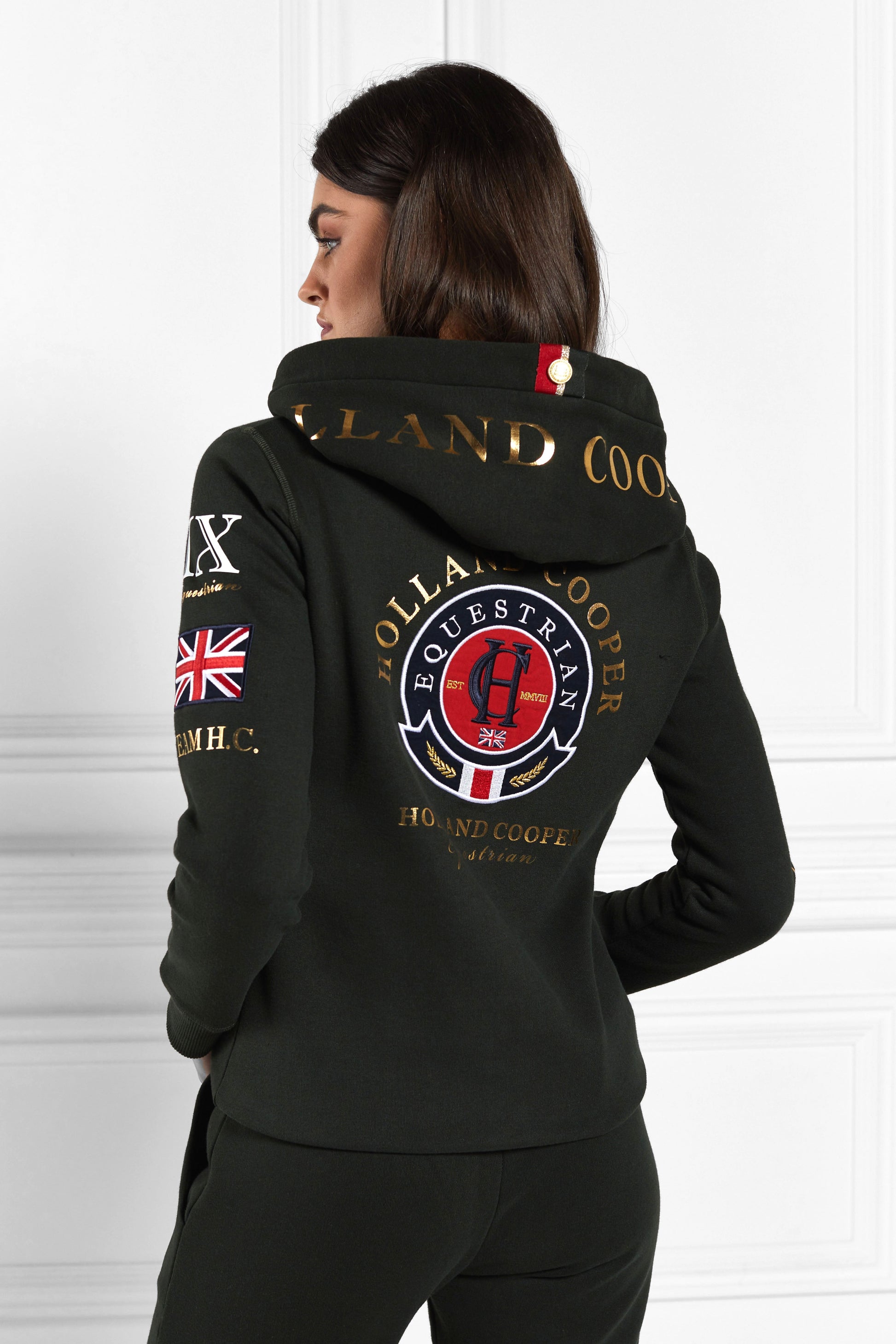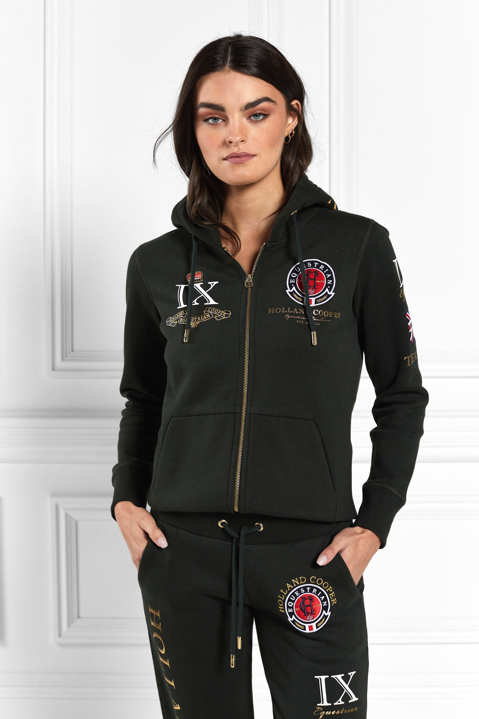Add a touch of luxury to your off-duty wardrobe with our Team Hoodie. crafted in a comfortable cotton blend with an adjustable front zipper. Finished with our signature embossed gold hardware. embroidered logos and a mix of luxurious graphics. Pair with our Team Joggers for head to toe comfort.
