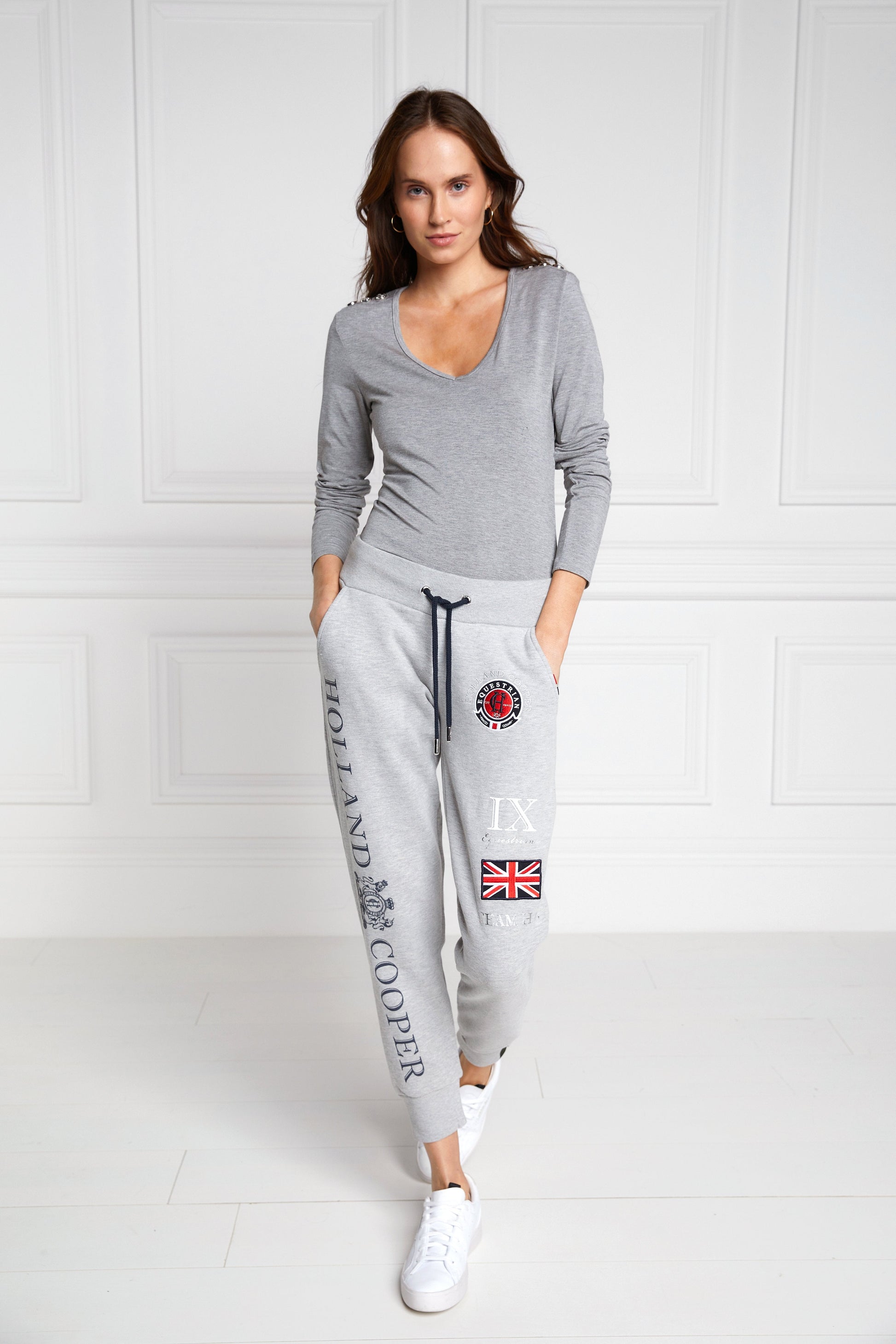 This comfortable classic is sure to become a style staple in your everyday casual wardrobe. The Team Joggers are composed of luxury soft cotton. designed with a loose fit and elasticated waistband to flatter the female figure. Emblazoned with bold Holland Cooper detailing and distinguished embossed gold hardware. they are sure to compliment your individual sense of style.