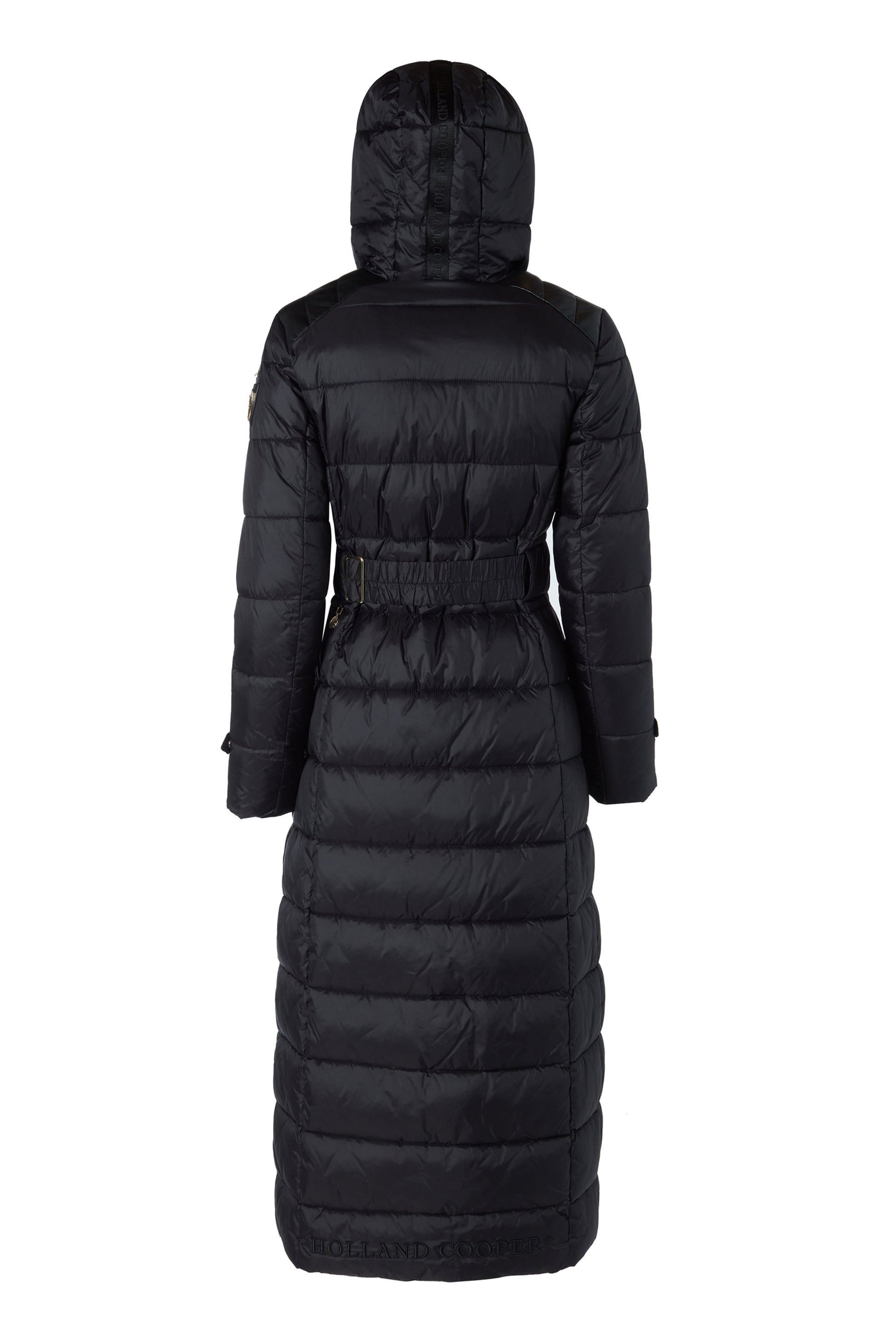 Providing a slimming silhouette with its integrated belt to cinch you in. this coat is an elegant and sophisticated alternative to your typical padded outerwear. Filled with a premium eco fill for ultimate warmth and decorated with gold metal hardware. Detailed with a jacquard branded belt with iconic HC gold buckle with a bold & oversized face-framing hood.
