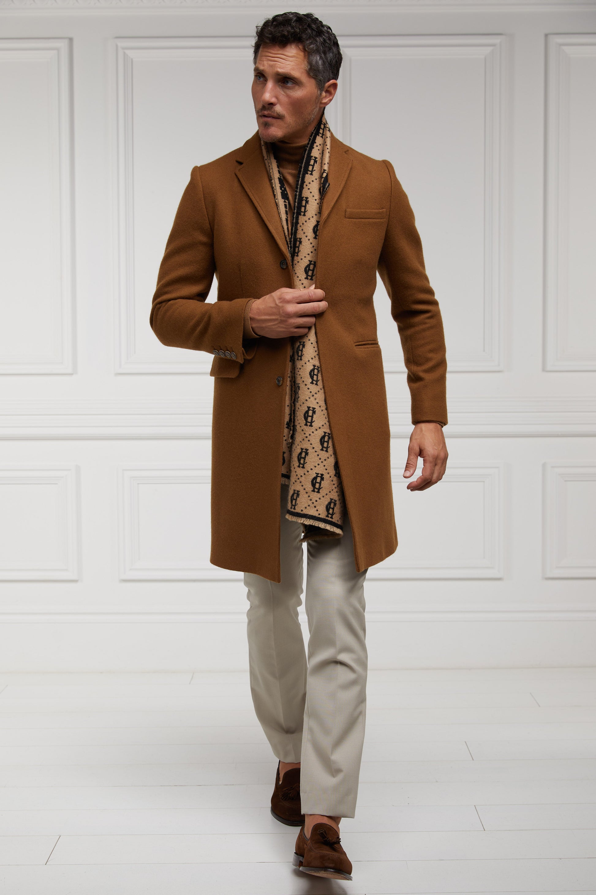 Hand crafted in the UK using the finest wools and meticulously tailored for a crisp. clean appearance. The Cheltenham Coat is the epitome of effortless style. This single-breasted mid-length coat is framed by slightly padded shoulders for a sharp silhouette. featuring classic notch lapels and horn style button fastenings. Pop the collar to reveal our hidden fabric detailing that matches the internal double-welt ticket pocket. Finished off with functional cuff button detailing and branded alloy-finish coloured buttons.
