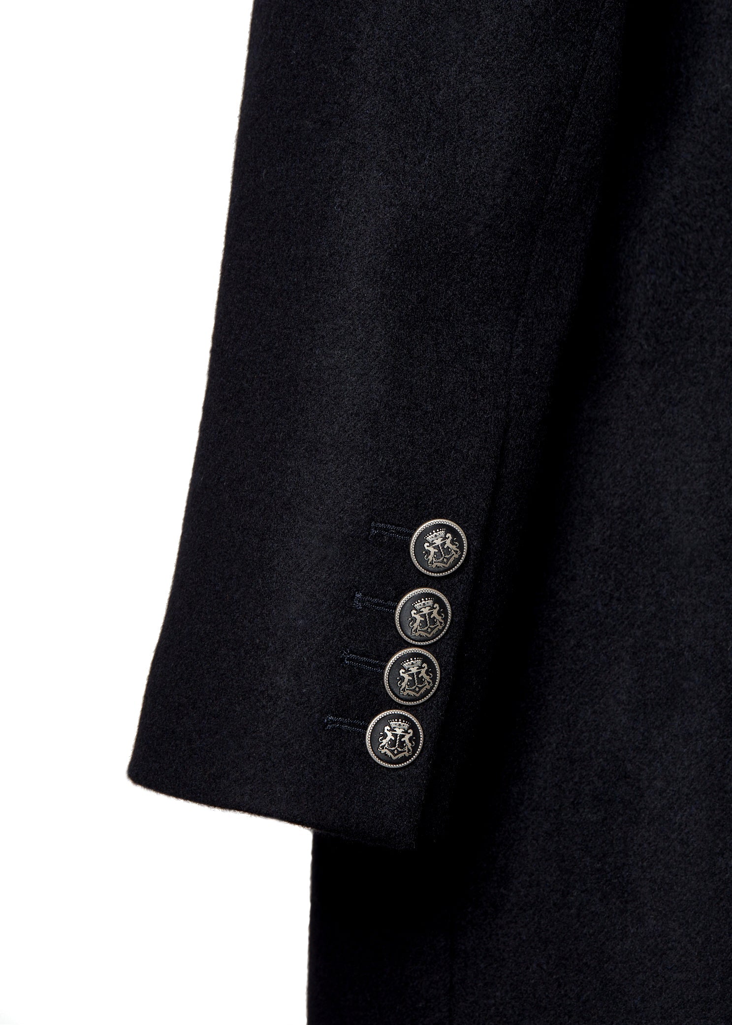 Hand crafted in the UK using the finest wools and meticulously tailored for a crisp. clean appearance. The Cheltenham Coat is the epitome of effortless style. This single-breasted mid-length coat is framed by slightly padded shoulders for a sharp silhouette. featuring classic notch lapels and horn style button fastenings. Pop the collar to reveal our hidden fabric detailing that matches the internal double-welt ticket pocket. Finished off with functional cuff button detailing and branded alloy-finish coloured buttons.