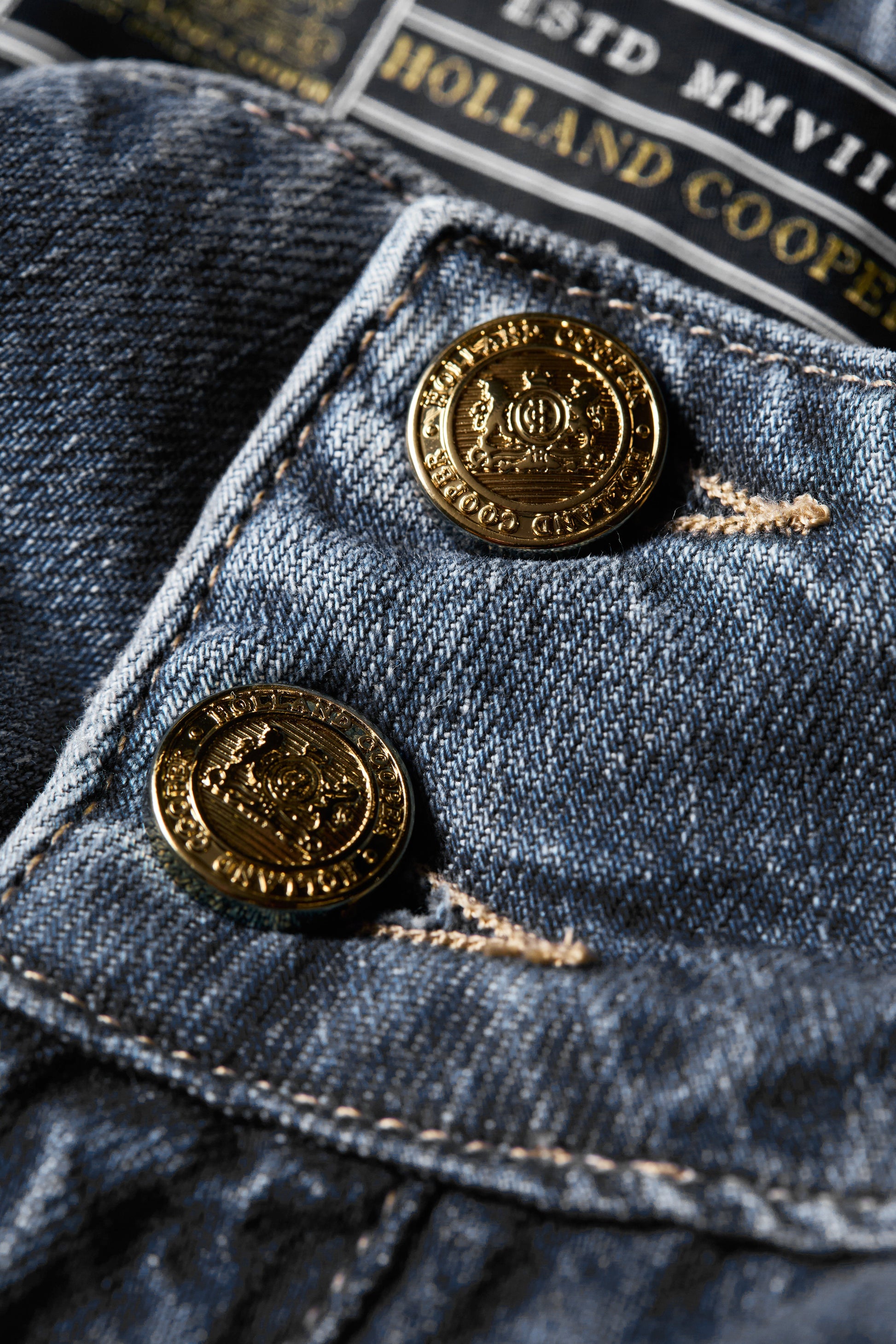 Vintage-inspired patch pockets at the front and familiar double-welt pocket styling at the back add timeless character. while signature gold metal hardware details elevate the design.