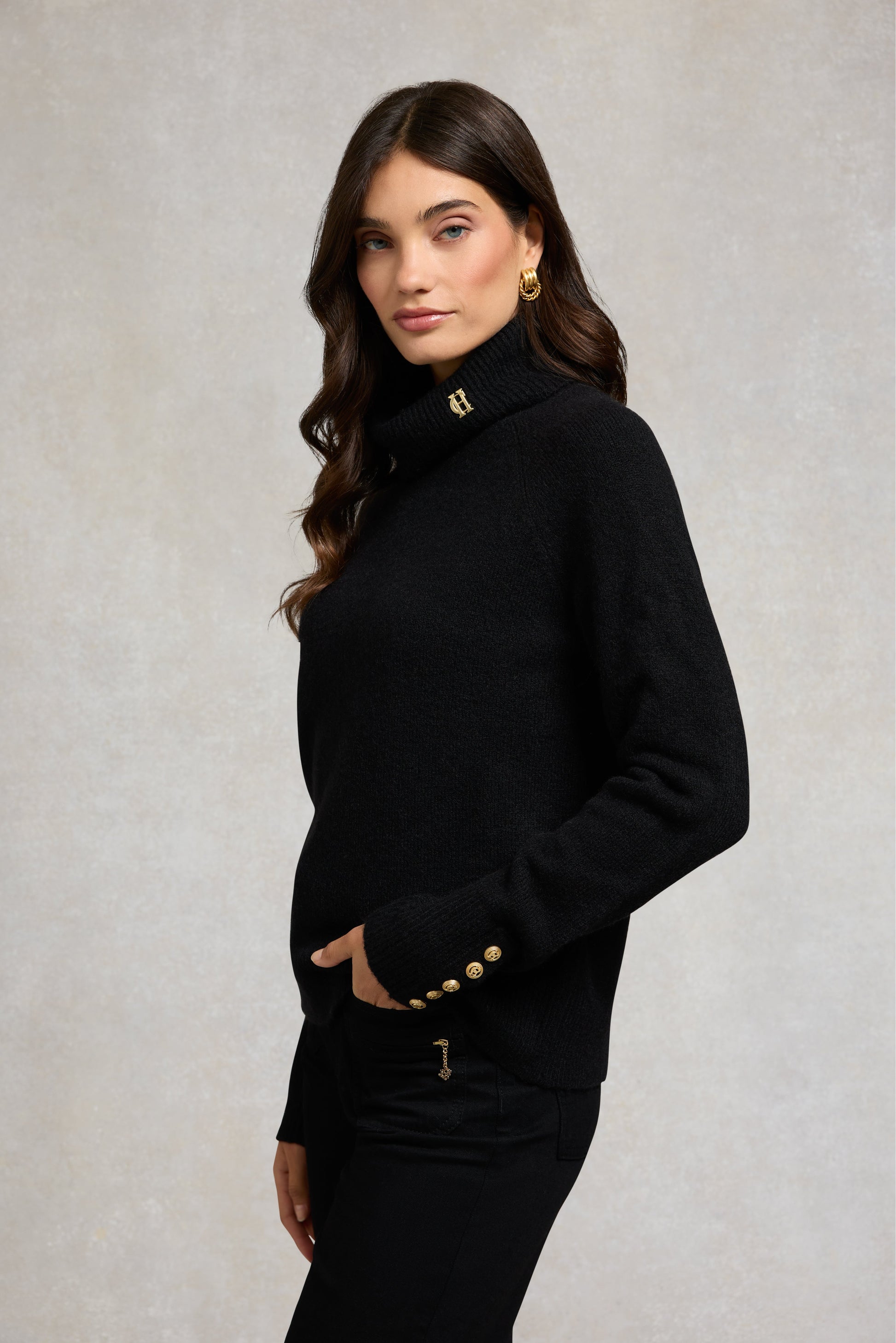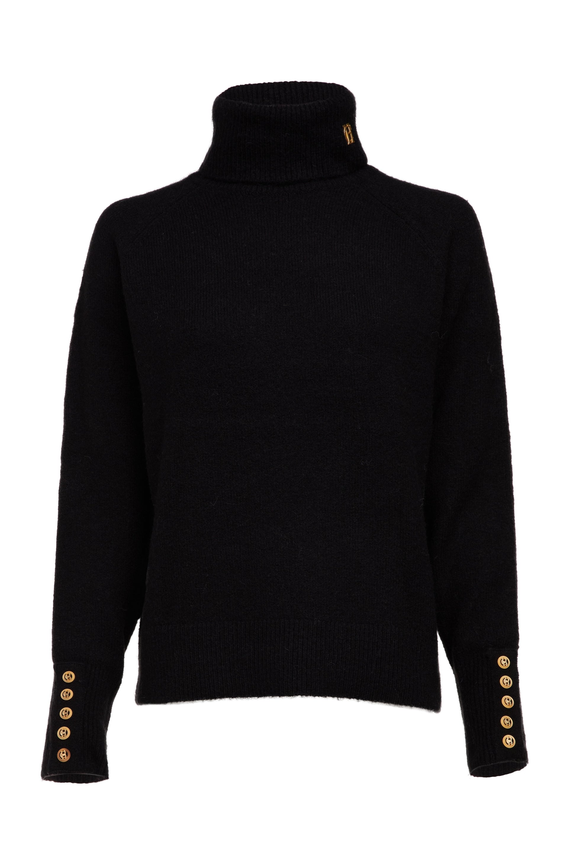 Crafted from a soft. textured wool. this knit has been designed with a relaxed fit and voluminous sleeves which elegantly pull into a ribbed cuff. Detailed with ribbed cuffs and hem with elegant rivet finishes.
