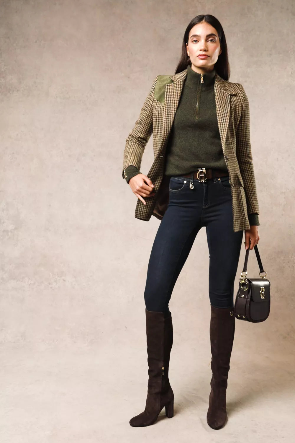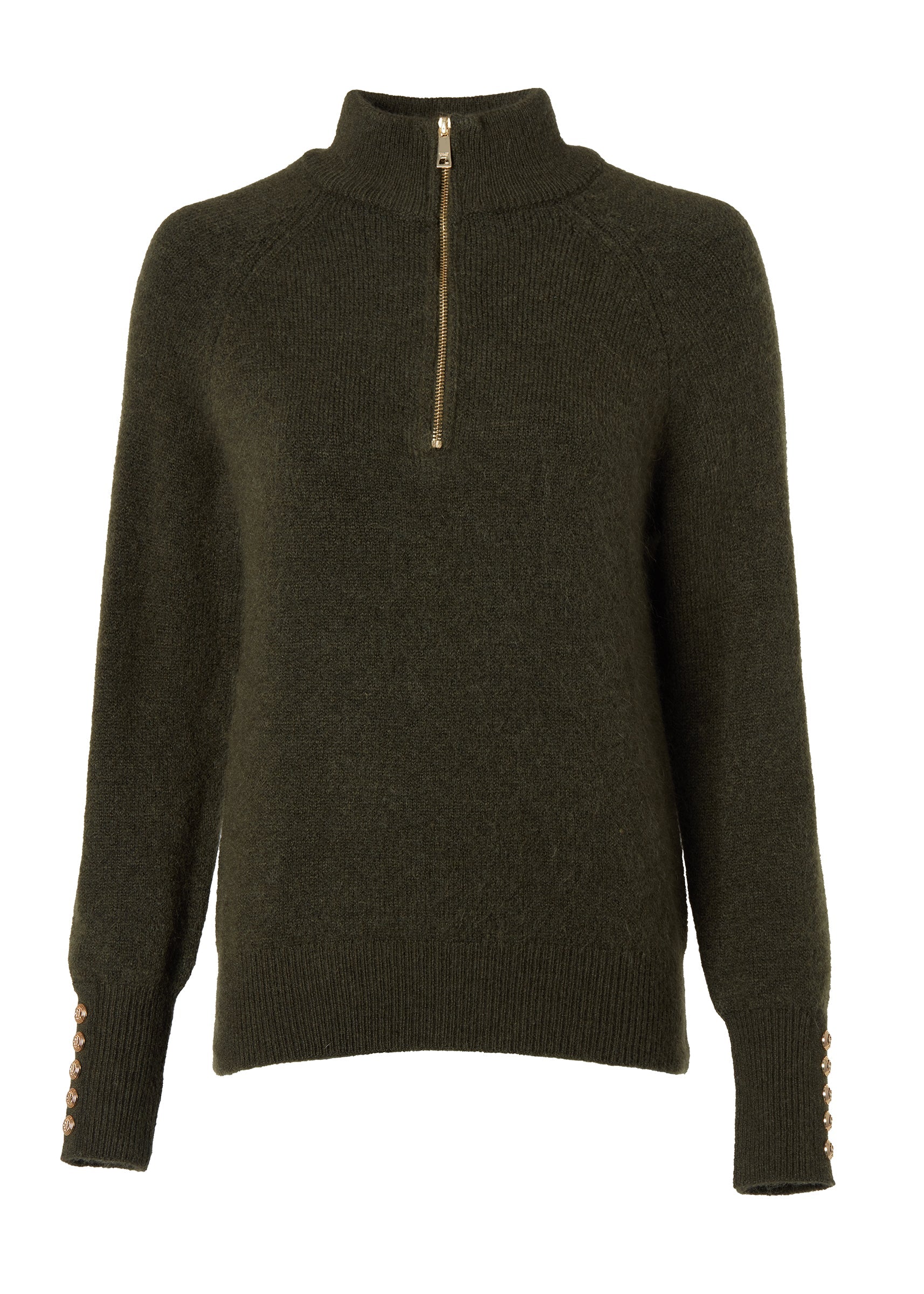Expertly crafted from a premium wool and mohair blend that promises exceptional warmth. Designed for a relaxed fit through the body. it offers effortless style and comfort. making it an essential addition to any wardrobe. The raglan full sleeves provide a modern flattering silhouette. while the iconic HC hardware on the cuffs adds significant elegance and a chic focal point.