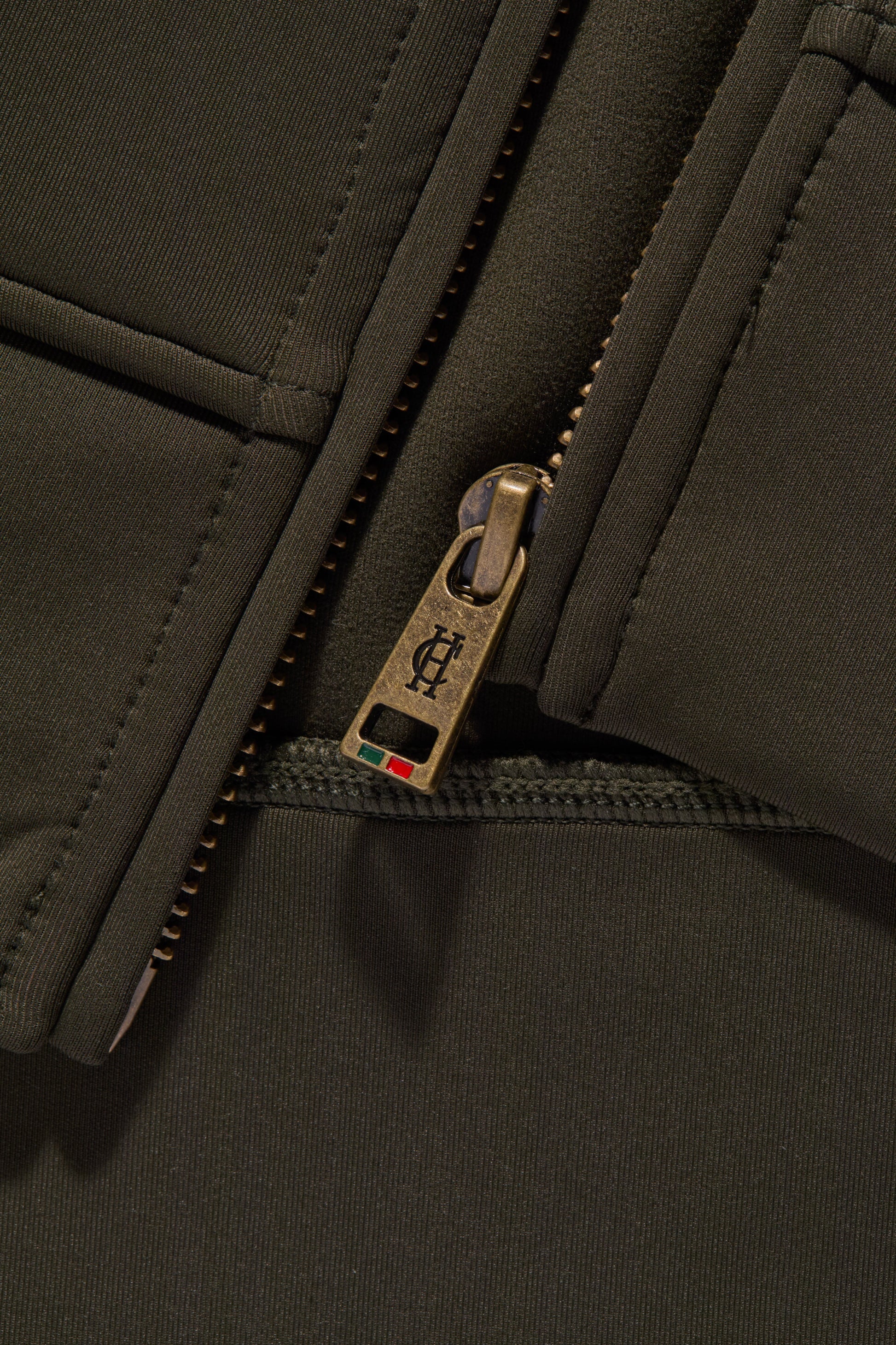 This performance-driven piece offers exceptional comfort and flexibility. The smooth. soft-touch fabric drapes elegantly while maintaining its refined shape. Distinguished by our signature high-build embroidery at the chest. this luxe athletic essential features a sherpa-lined collar for added warmth and sophistication. Practical welt side pockets and a branded zip pull complete this refined design. The relaxed silhouette ensures unrestricted movement while maintaining a polished appearance.