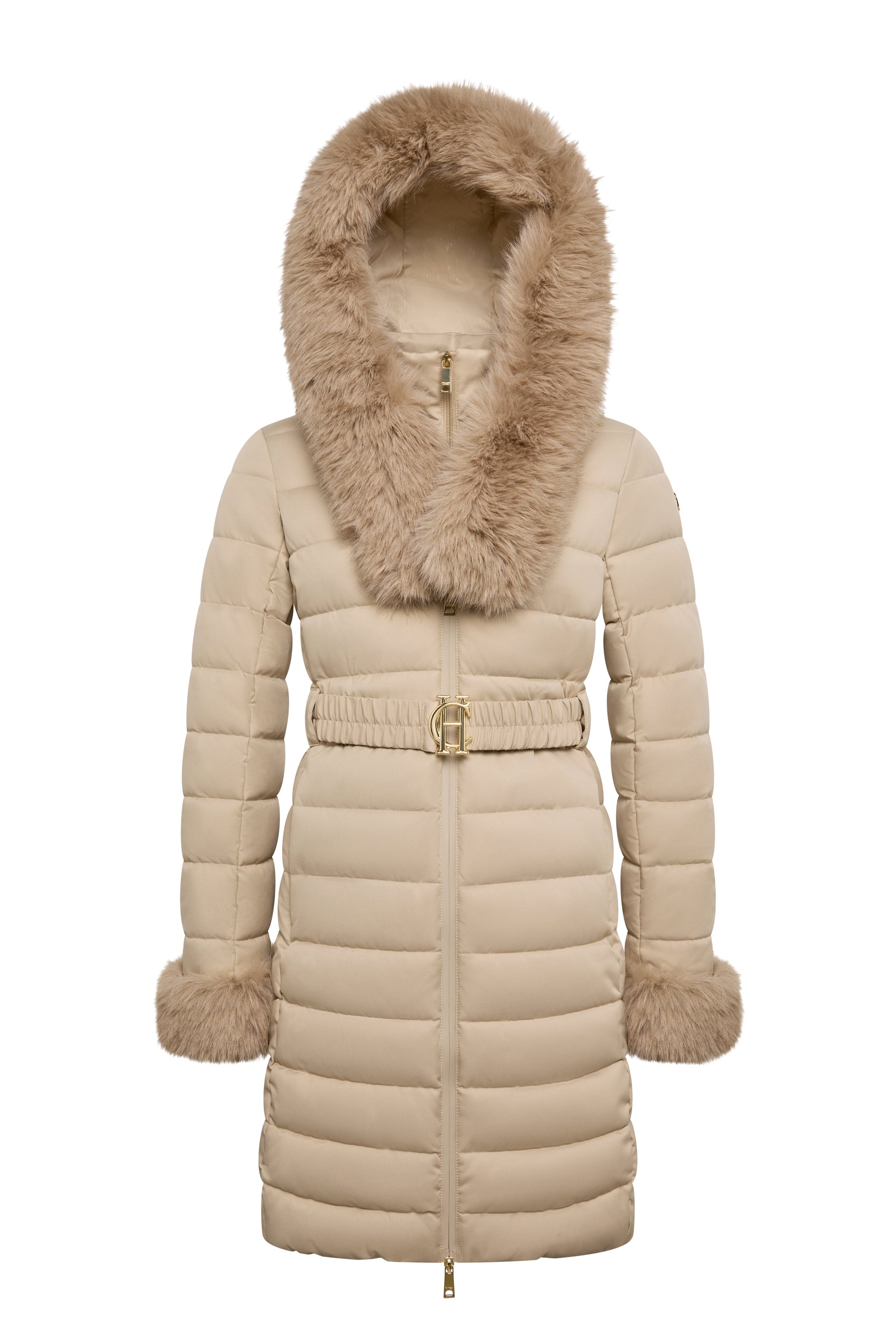 Inspired by our iconic Aspen Coat. the Vostok Belted Coat returns for the season with a modern update. Designed with a flattering mid-length silhouette. it features a chic mock front gilet and elegant. removable faux trims for a refined. vintage-inspired look. This season. the coat is elevated with a new waist belt showcasing our iconic HC buckle. offering a cinched. tailored finish. Available in a new seasonal colour. it balances practical winter warmth with effortless. contemporary style.
