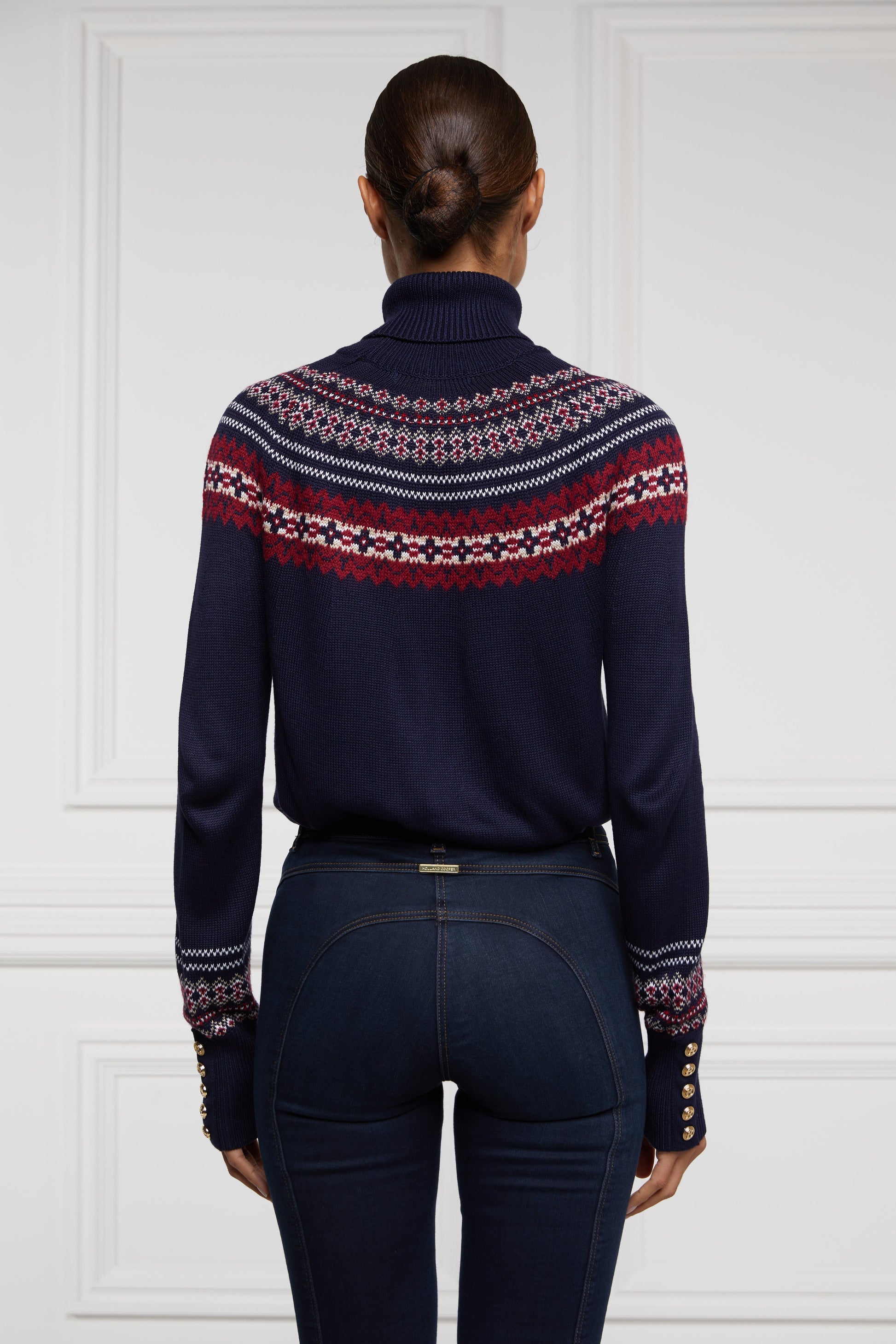 Created with a classic fairisle design that stretches across the shoulders. this knit has been designed with a relaxed fit. Made from a super soft and lightweight yarn with a cosy roll neck and ribbed cuffs. Detailed with our iconic HC branding.