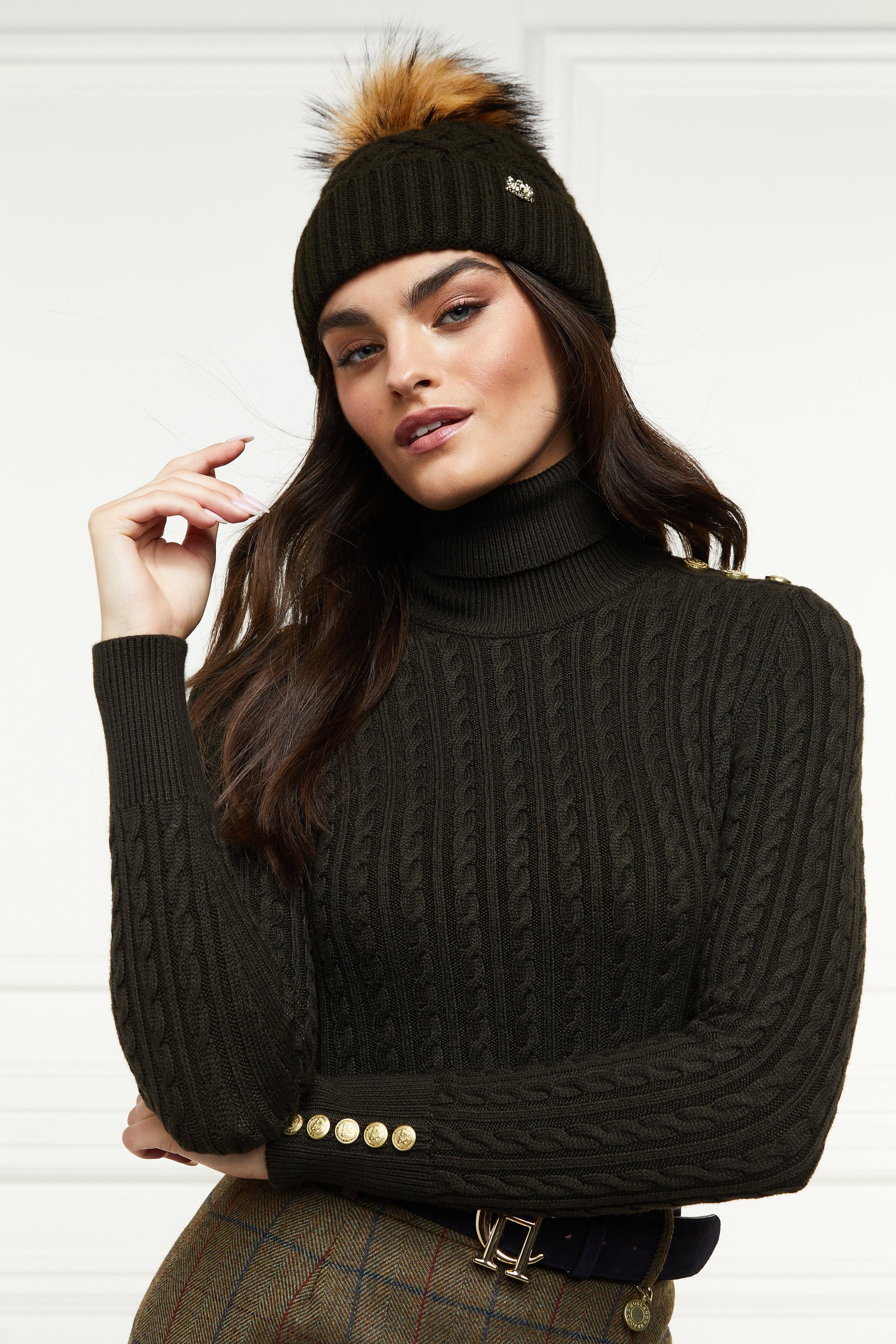 A must-have addition to every wardrobe. our bobble hat features a detachable bobble crafted from luxurious faux fur. Detailed with a staple HC crest. this hat has been created from an elegant cable knit build.